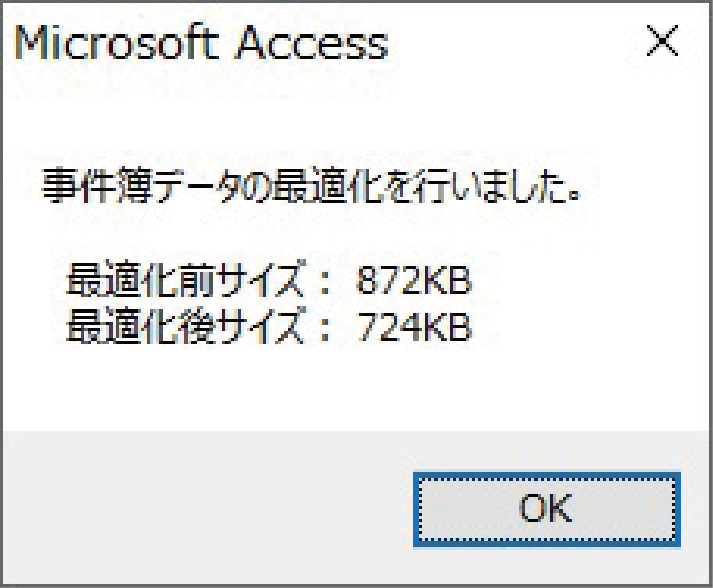 案件データ、委任状データ等、全てのデータ(レコード)を削除した状態から最適化を行うと、次回のデータ作成時、「ID」ナンバーが新たに1から振り直しされます。
