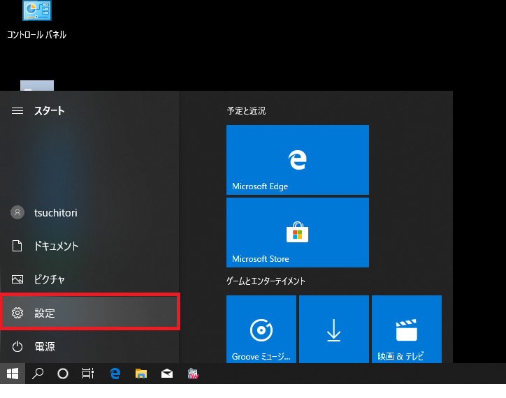 - Windowsの設定画面を開く